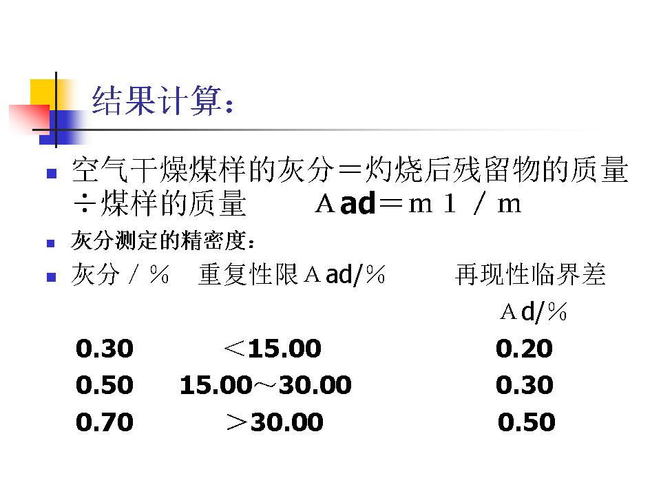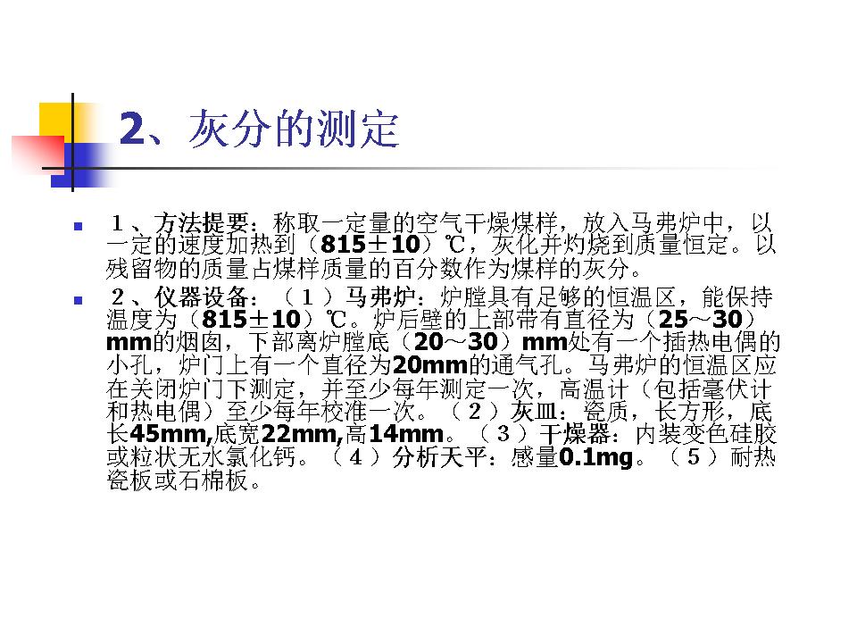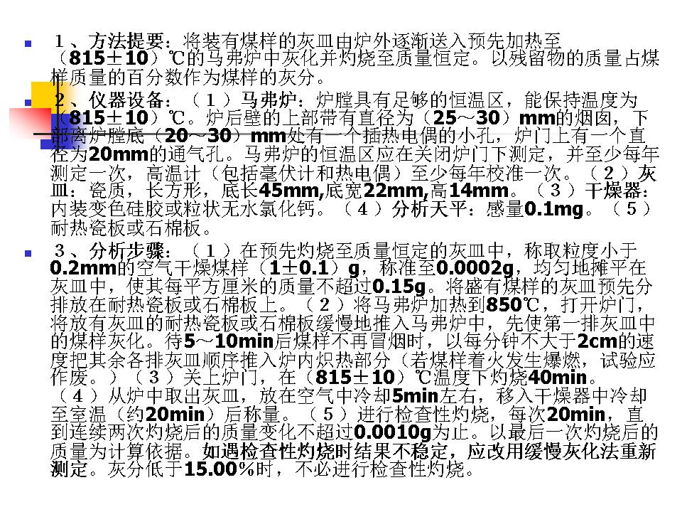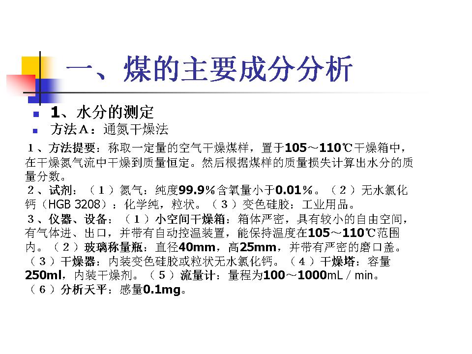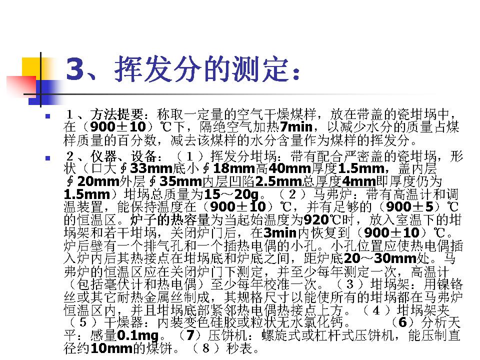 煤的水分、灰分、挥发分的测定及分类
