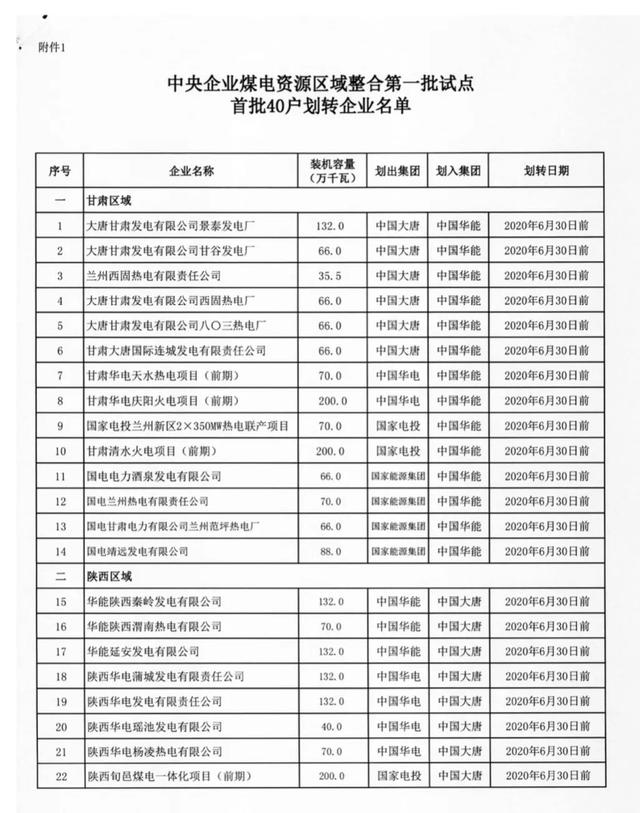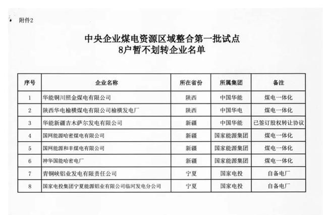 48户,央企煤电资源区域整合首批划转企业名单出炉