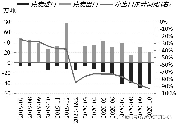 我国焦炭市场基本以自产自销为主,去年国产焦炭及半焦共4.7亿吨,其中仅652万吨流向国外,出口占比不到2%。此前我国一直是焦炭净出口国,由于国产焦炭性价比较高,进口量微乎其微,几乎可以忽略不计,但这种情况今年发生了明显改变:由于海外工业生产受到疫情冲击,而国内需求恢复良好,周边国家的低价焦炭资源开始向我国输入。尤其从7月开始,受国内焦化去产能预期影响,进口焦炭性价比凸显,当月焦炭及半焦进口量达到41万吨,超过39万吨的出口量,我国焦炭市场呈现净进口状态。