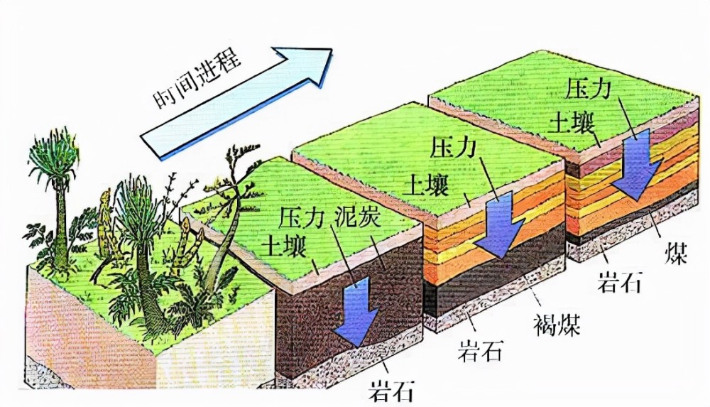 让大量的植物形成了富含碳、氢、氧、氮等众多元素的泥炭,第二阶段被称为是煤化阶段,由于地壳运动的原因,这些泥炭会被埋藏在地下,由于地球内部的高温和高压环境影响,会将这些泥炭中的氢、氧、氮元素的含量减少,最后留下碳元素,当碳元素堆积到一定数量的时候,就形成了褐煤,褐煤是煤炭中最烂的一种煤,也是最早形成的煤炭,经过长时间的变化,地壳继续下沉,褐煤也会跟着下沉,这个时候褐煤需要承受巨大的温度和压力,导致褐煤中的氢、氧、氮元素继续减少。