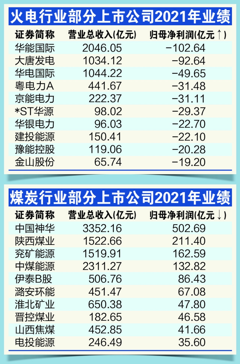 2021年,火电行业与煤炭行业呈现出冰火两重天的景象——前者是全行业巨亏,而后者则是全行业净利润创出历史新高。