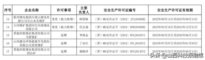 山西省应急管理厅关于颁发煤矿(企业)安全生产许可证的公告